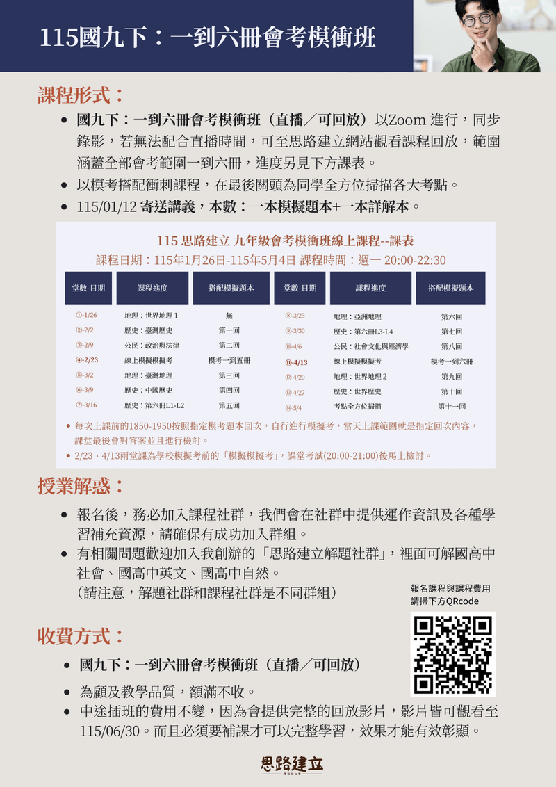 以模考搭配衝刺課程,在最後關頭位同學全方位掃描各大考點!建立思路!