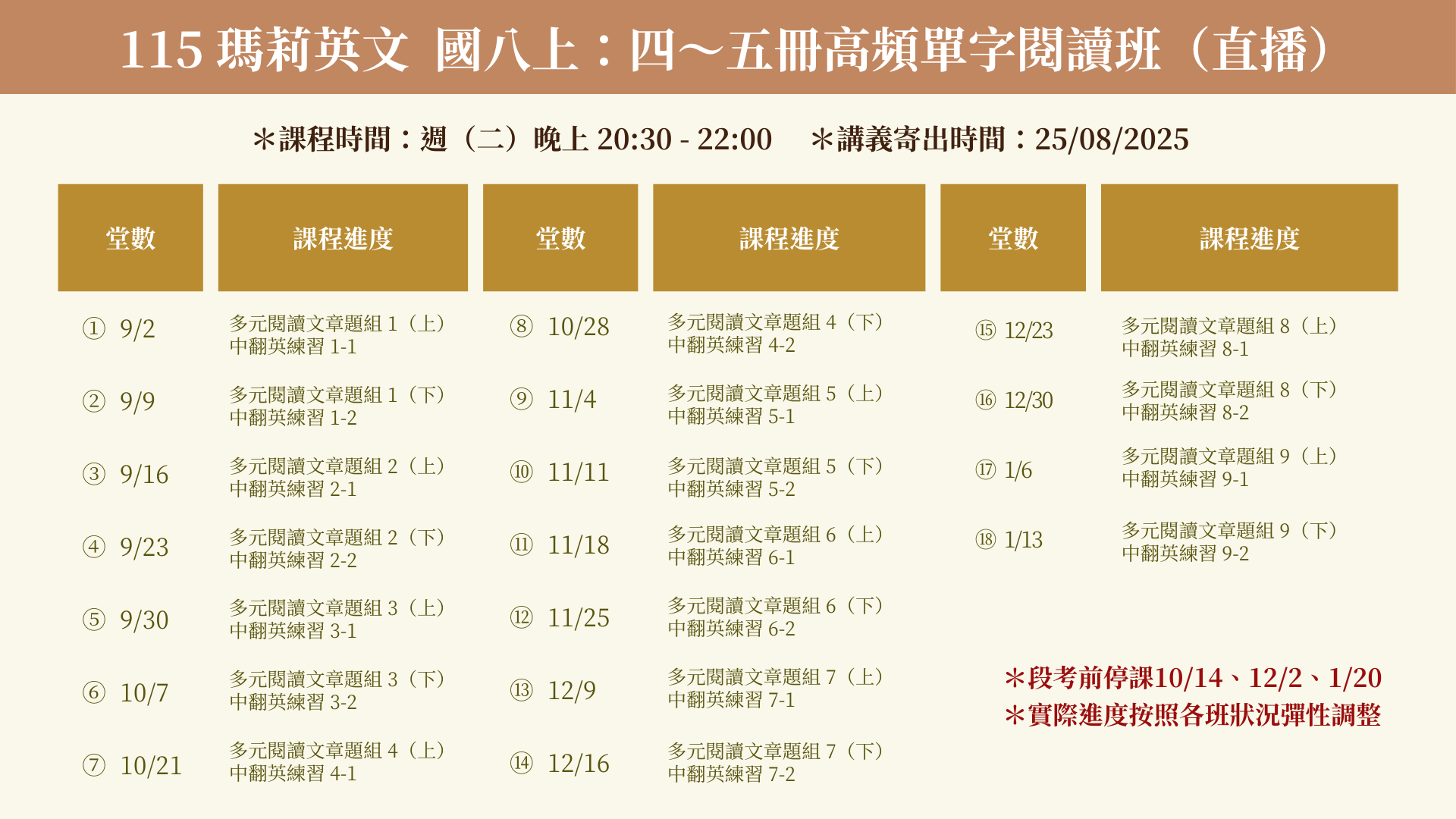 🔰瑪莉老師根據以上四方面,設計了本進度課程,每堂皆分兩部分: