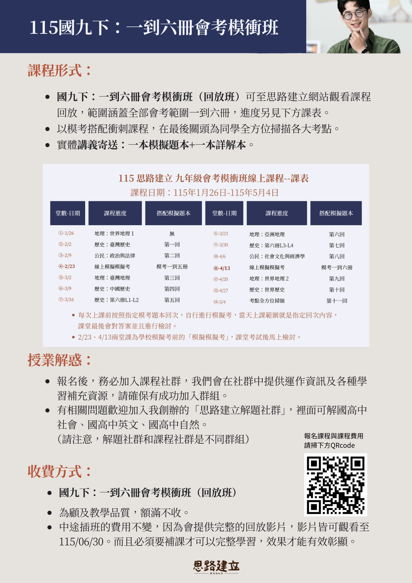 以模考搭配衝刺課程,在最後關頭位同學全方位掃描各大考點!建立思路!