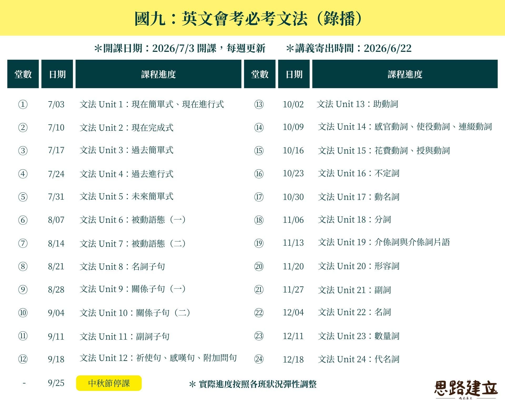 📌 請注意:【國九上:英文會考總複習班(直+錄播)】