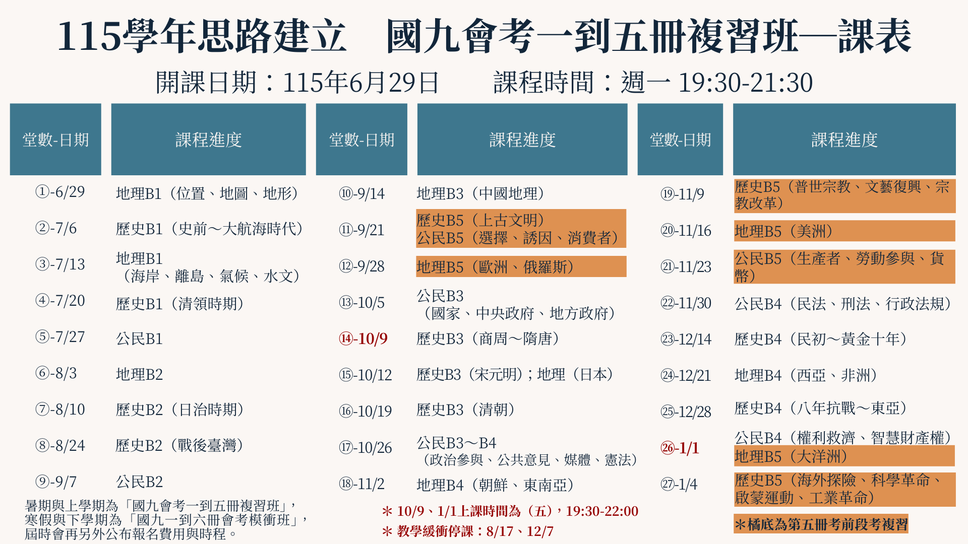 🔵本課程包含:國九一到五冊會考複習班,複習一到五冊,內容如課表。